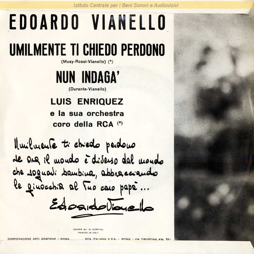 Note: Ristampato successivamente su etichetta diverse (RCA Victor Serie Europa) ma con identico numero di catalogo/ Pubblicato con tre copertine diverse nel fronte e con piccole differenze nel retro (vedi link "Altre immagini") / Fotografia delle prime due copertine di G.Cortini / Distribuito da RCA Italiana - Roma
