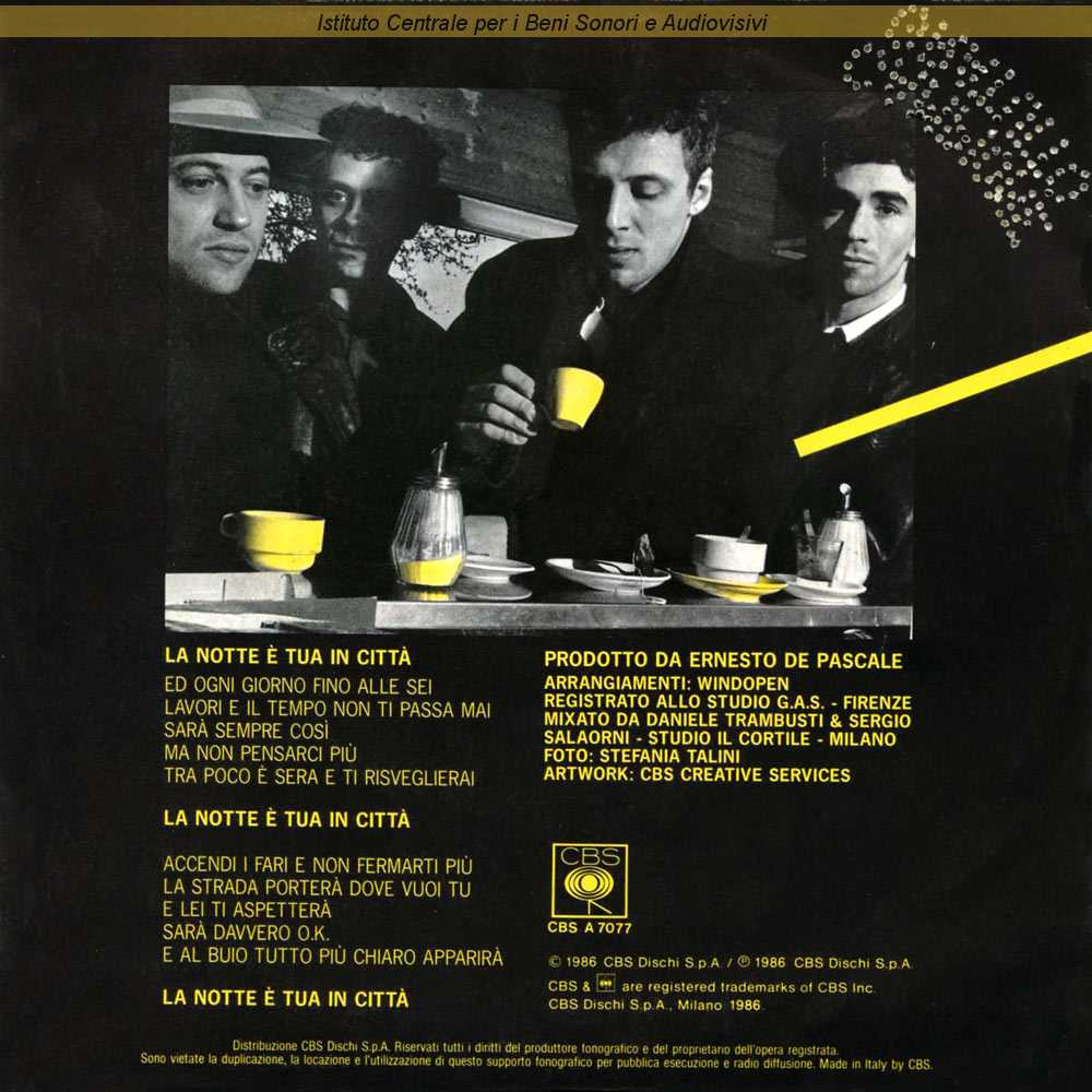: Data matrici: 14 Marzo / Registrato allo Studio G.A.S. di Firenze - Mixato da Daniele Trambusti e Sergio Salaorni allo Studio Il Cortile di Milano / Fotografia di Stefania Talini / Distribuito da CBS Italia - Milano
