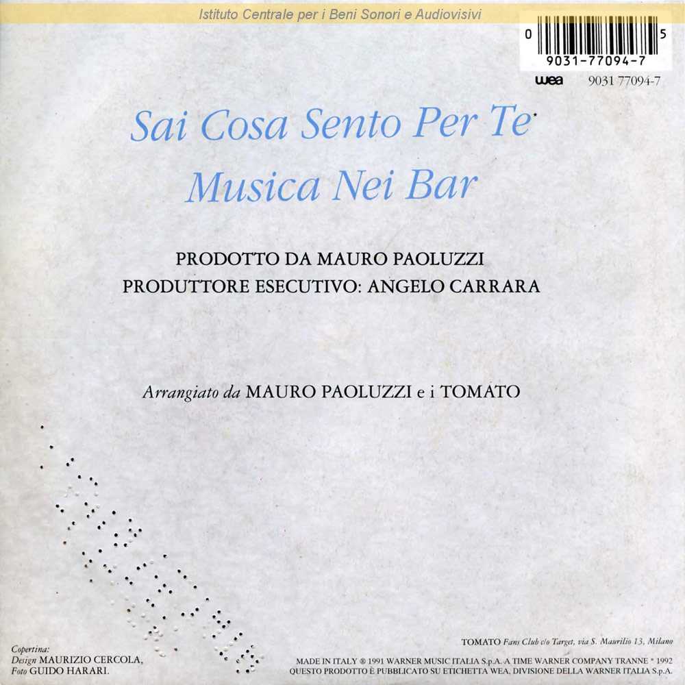 Note: Data matrici: 6 Febbraio / Lato A: "Festival di Sanremo 1992" / Copertina di Maurizio Cercola - Fotografia di Guido Harari / Distribuito da Warner Italia - Milano / Formazione: Paolo Costa - basso; Claudio D'Onofrio - voce, chitarre; Giorgio Vanni - voce, chitarre acustiche