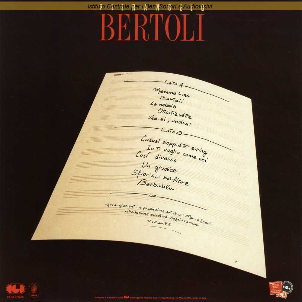 Autori: Pierangelo Bertoli Edizioni: Di Lazzaro