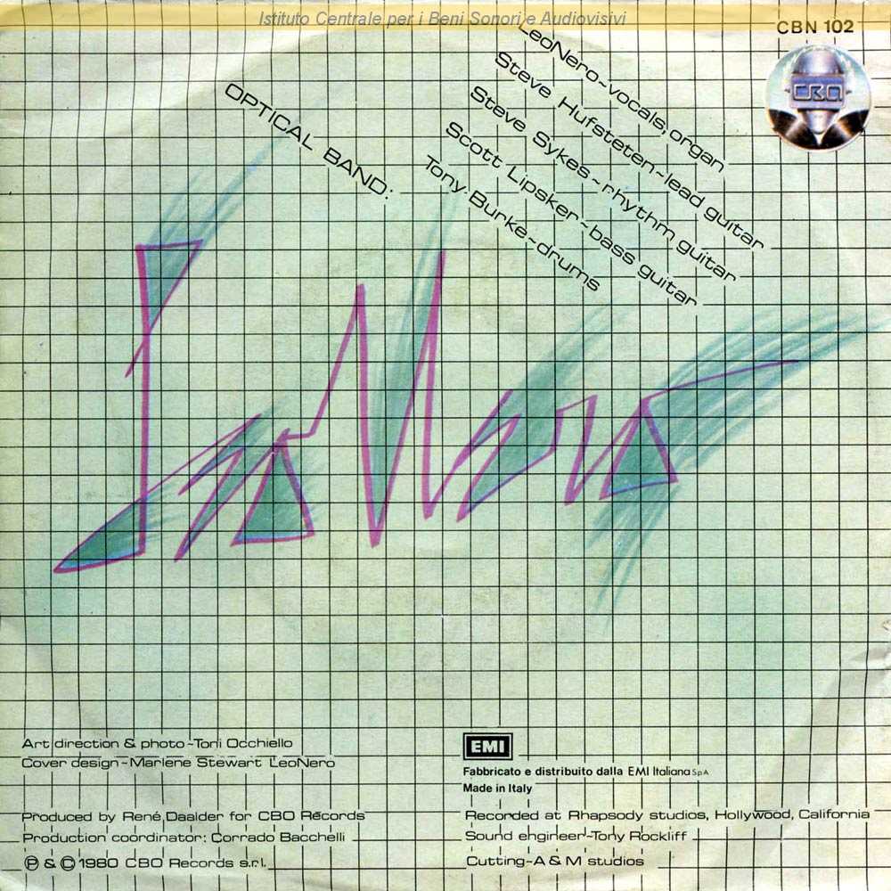 Note: Data matrici: 8 Gennaio / Leo Nero è il nome d'arte di Gianni Leone / Fotografia di Toni Occhiello - Copertina di Marlene Stewart e Leo Nero / Registrato nei Rhapsody Studios di Hollywood (California-U.S.A.) da Tony Rockliff / Distribuito da EMI Italiana - Caronno Pertusella (Varese)