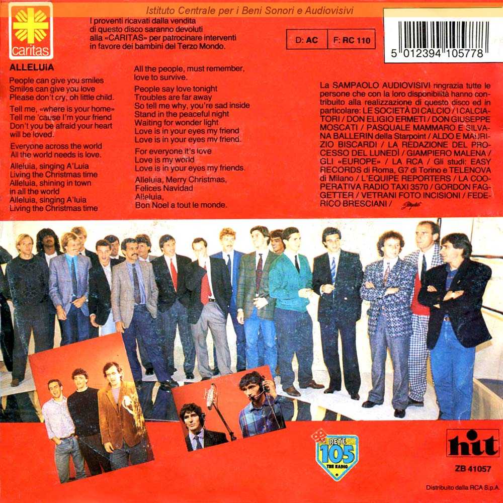 Note: Proventi delle vendite devolute alla Caritas / Copertina di Gordon Faggetter / Distribuito da RCA Italiana - Roma / Voci dei più importanti giocatori del campionato del 1986: Altobelli-Antognoni-Bergreen-Bertoni-Bonetti-Boniek-Brady-Cabrini-Conti-Corneliusson-Dirceu-Edinho-Elkjaer-Galli-Graziani-Gullit-Junior-Kieft-Magrin-Massaro-Platini-Rossi-Rummenigge-Stromberg-Trifunovich