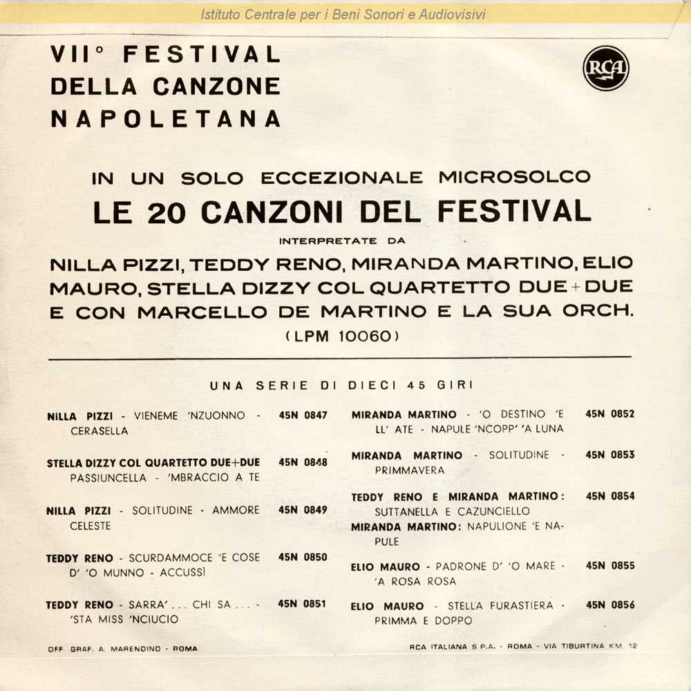 : Ambedue i lati dal "Festival della Canzone Napoletana 1960" / Distribuito da RCA Italiana - Roma