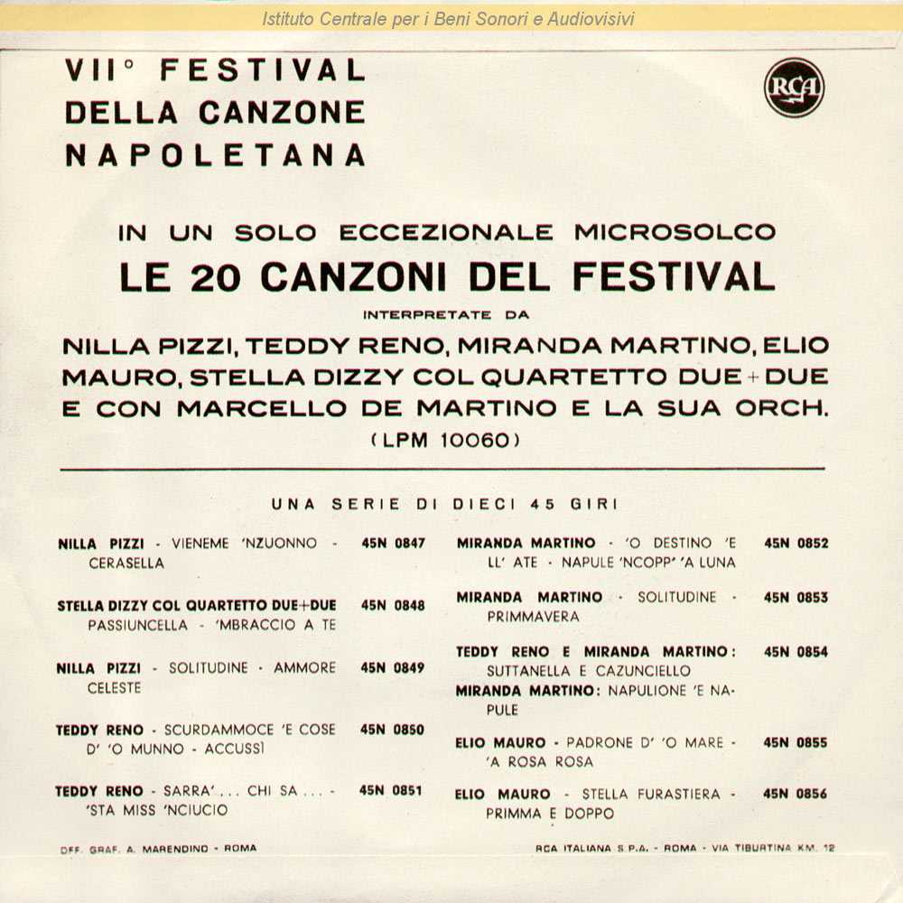 : Dal "VII° Festival della canzone napoletana" / Distribuito da RCA Italiana - Roma