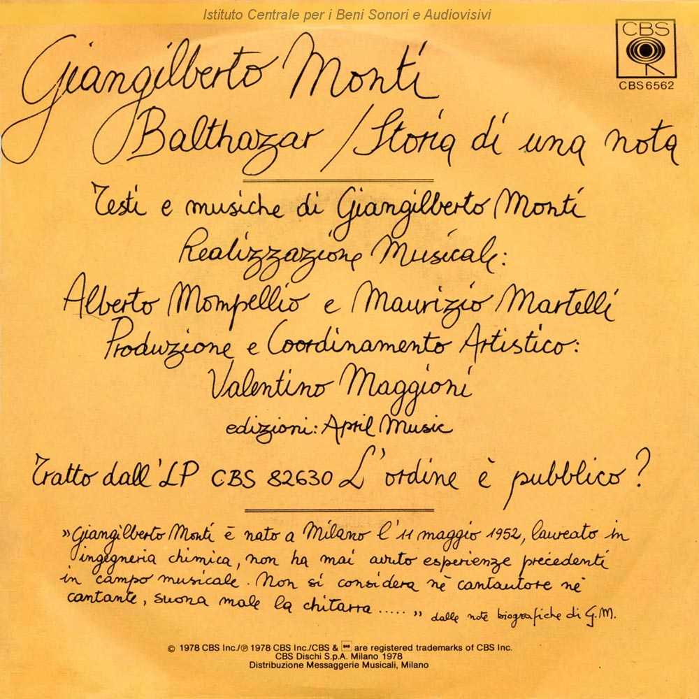 : Data matrici: 27 Luglio / Sul retro copertina breve nota biografica non firmata dell'artista / Distribuito da Messaggerie Musicali - Milano