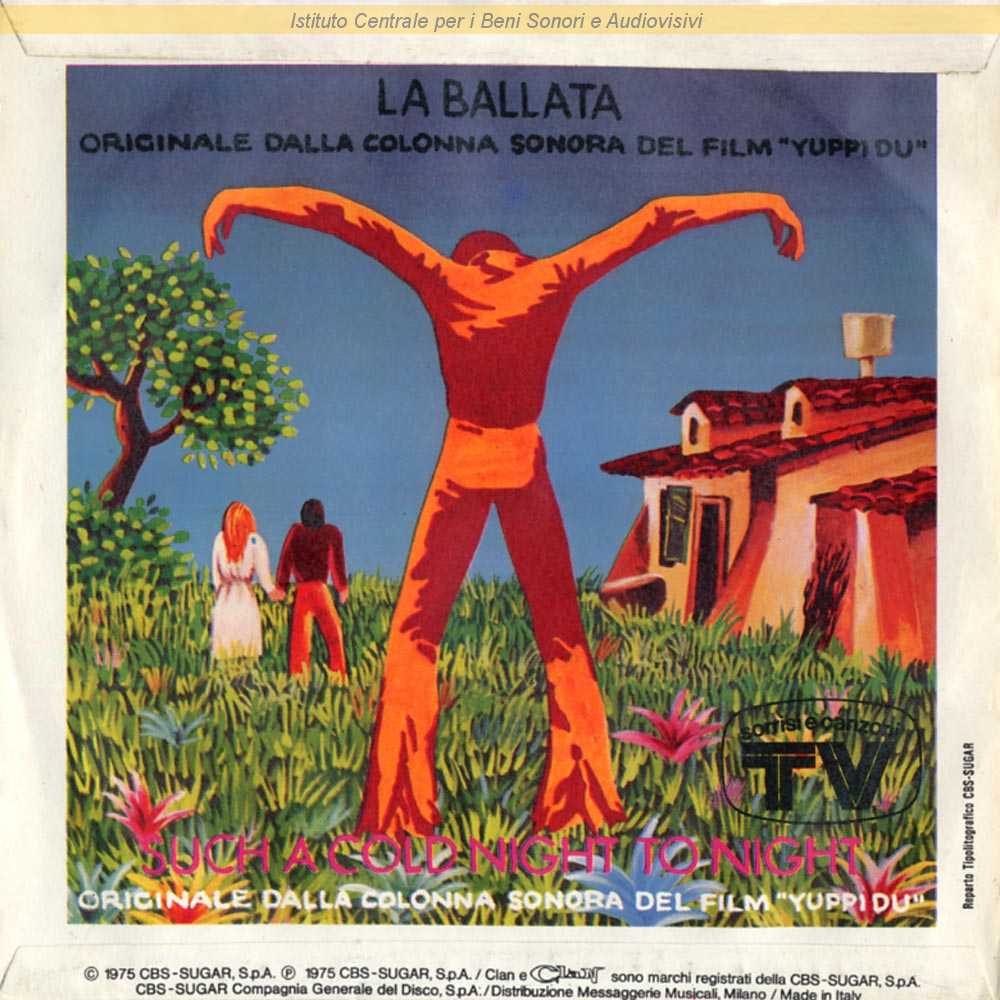 Note: Data matrici: 21 Gennaio / Attribuito ufficialmente a Gino Santercole anche se l'etichetta del lato A lascia misteriosa sia l'identità dell'esecutore che quella degli autori (vedi link "Altre immagini") - Lato B: strumentale / Ambedue i lati dalla colonna sonora originale del film "Yuppi-Du" (Adriano Celentano, 1975) / Distribuito da Messaggerie Musicali - Milano