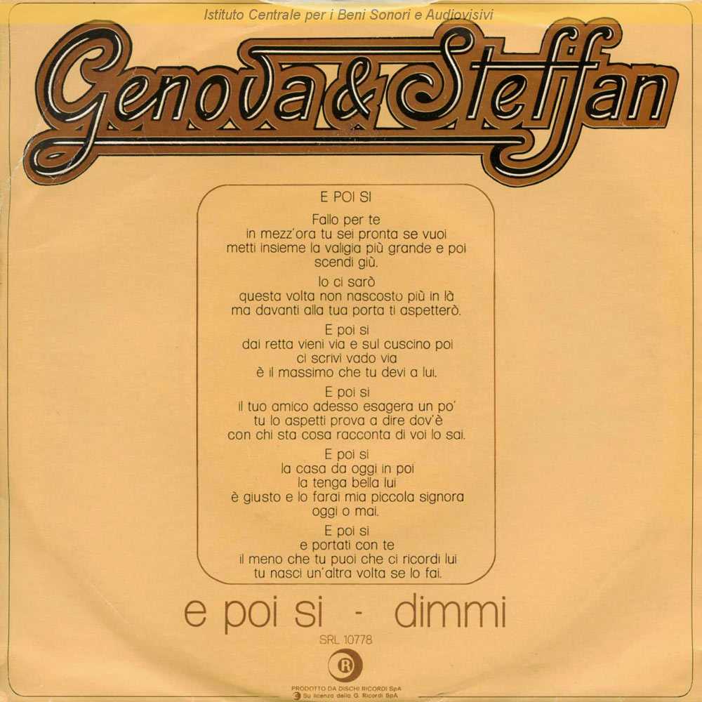 : Distribuito da Dischi Ricordi - Milano / Formazione: Gianni Genova - voce, chitarra; Paolo Steffan - voce, basso, tastiere