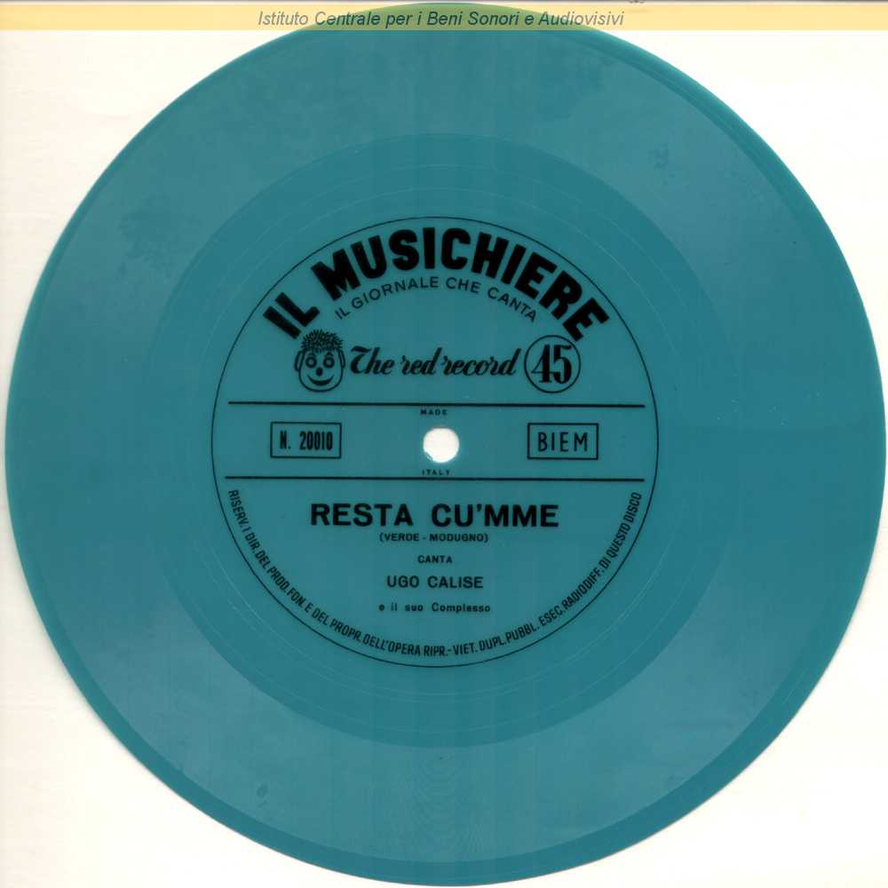 : Si tratta di un disco di plastica colorata morbida e flessibile, tecnicamente definito "flexi", allegato al n.21 della rivista "Il Musichiere" del 28 Maggio 1959