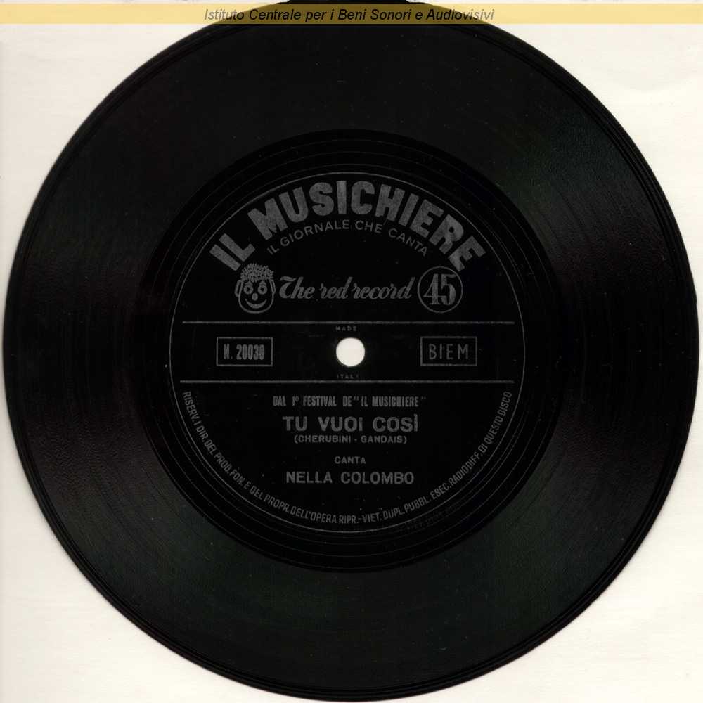 : Si tratta di un disco di plastica colorata morbida e flessibile, tecnicamente definito "flexi", allegato al n 41 della rivista "Il Musichiere" del 15 Ottobre 1959 / Canzone partecipante al "I° Festival de "Il Musichiere"