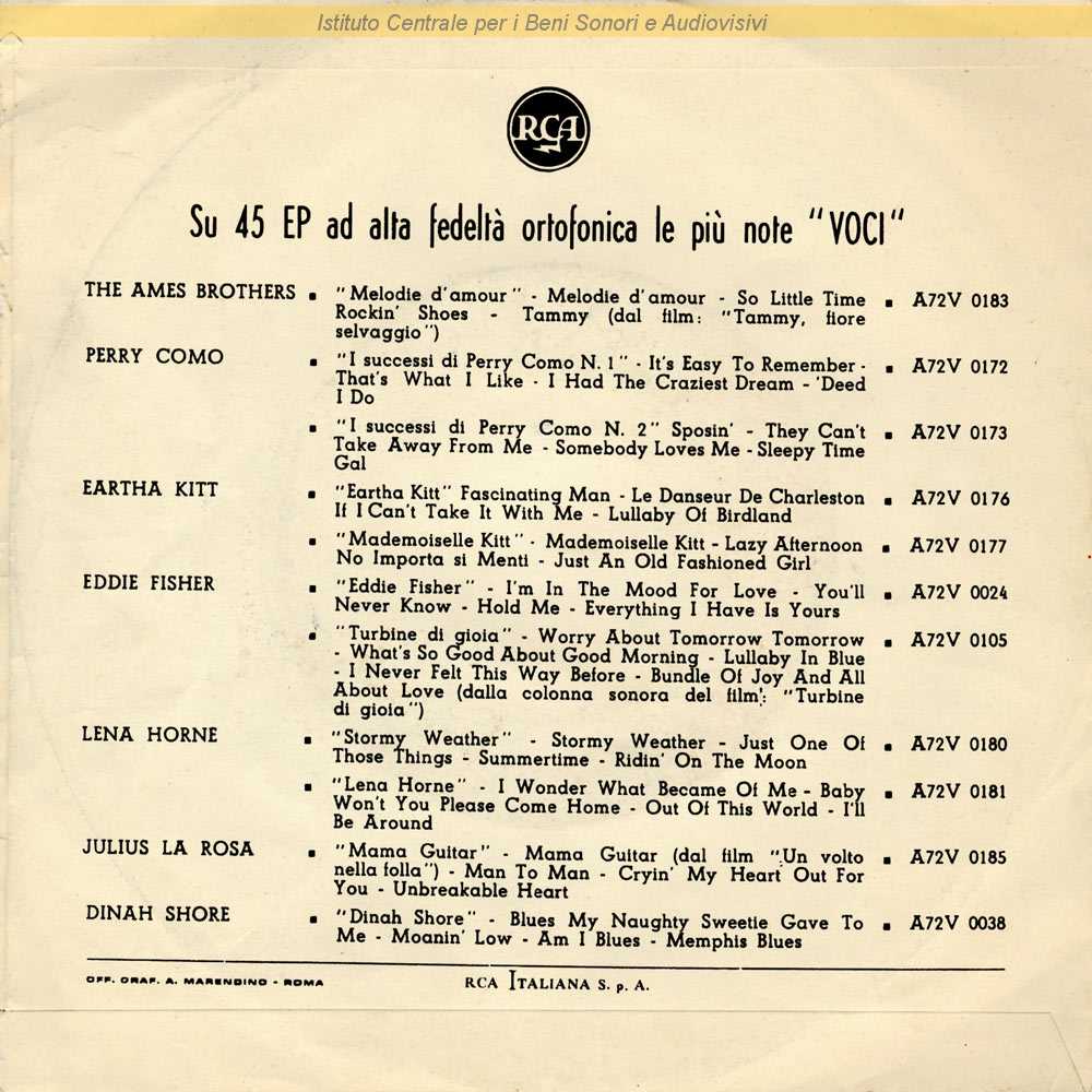 : Distribuito da RCA Italiana - Roma