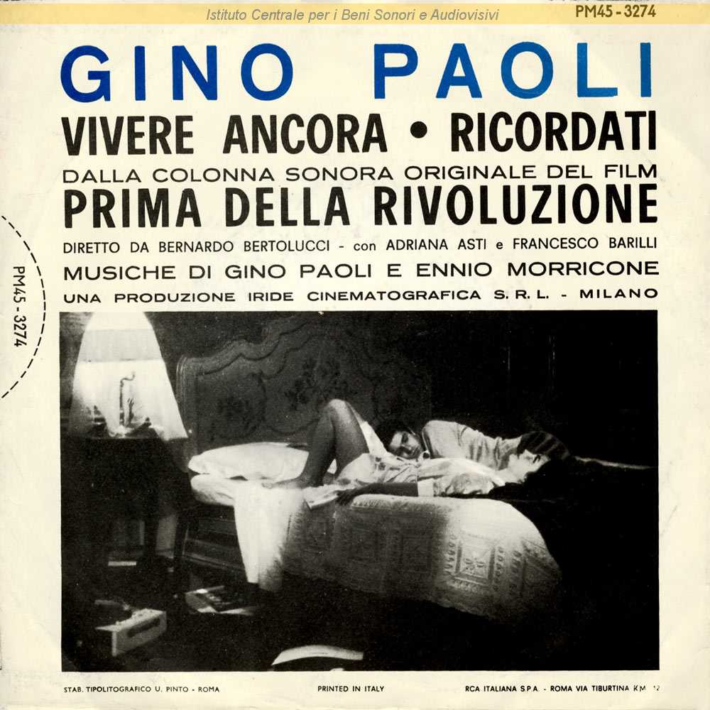 : Dalla colonna sonora originale del film "Prima della Rivoluzione" (Bernardo Bertolucci, 1964) / Distribuito da RCA Italiana - Roma
