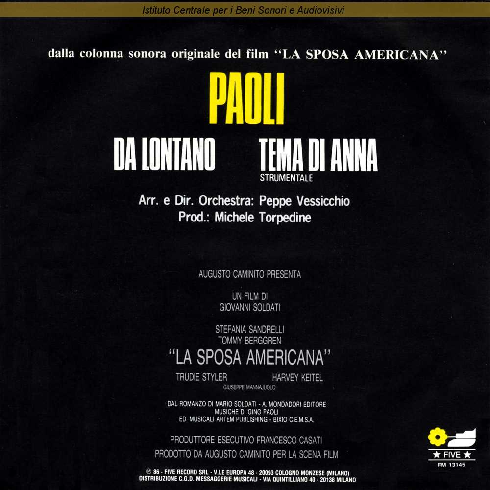 : Il lato B è strumentale / Dalla colonna sonora del film "La sposa americana" (Giovanni Soldati, 1986) / Distribuito da CGD Messaggerie Musicali - Milano