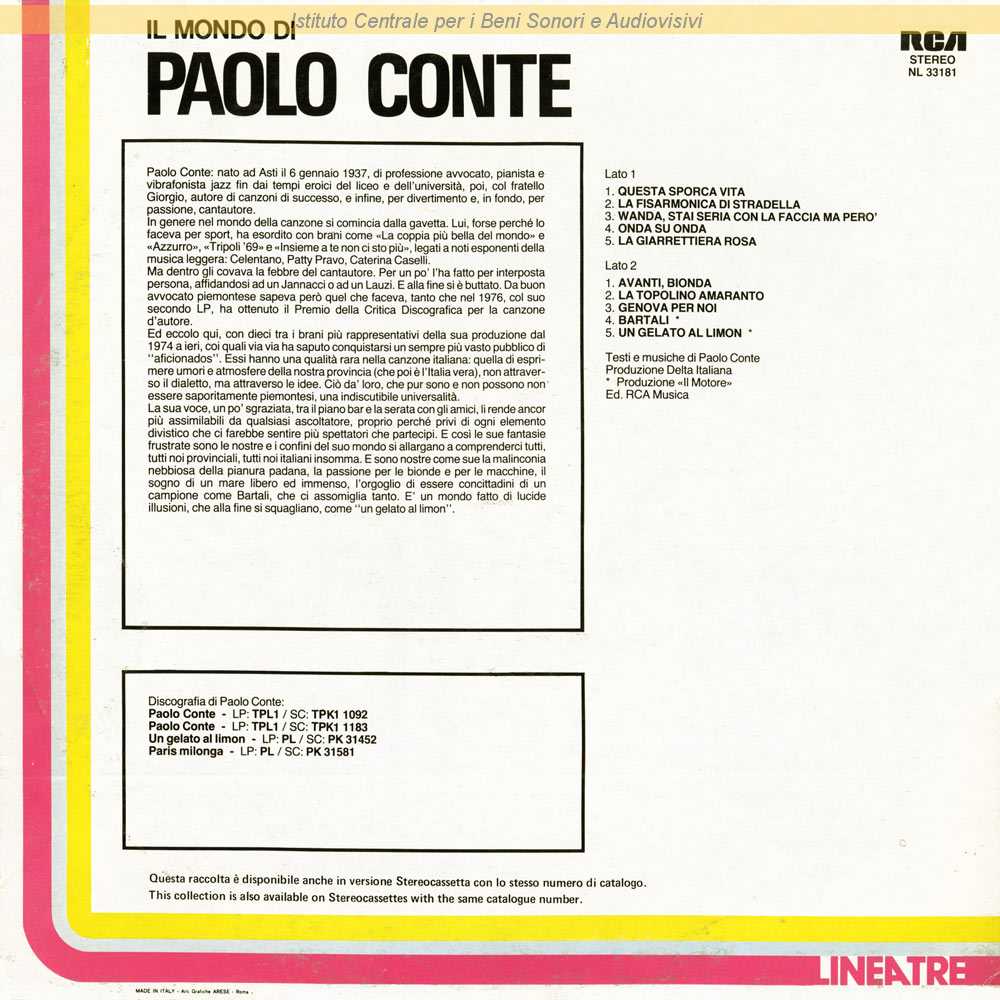 Autori: Paolo Conte Produttori: Il Motore