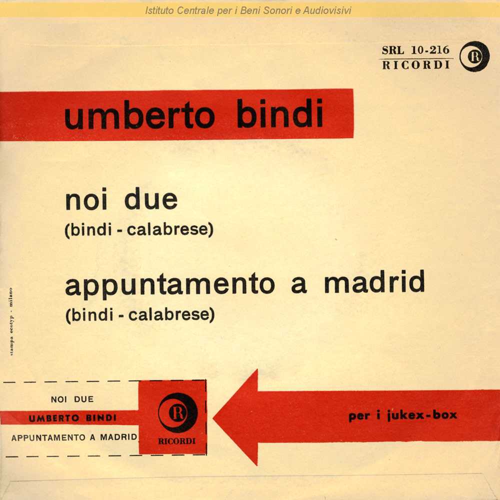 : Data matrici: 18 Novembre / "Appuntamento a Madrid" in nuova versione rispetto alla precedente / Disegno in copertina di Pizzorno / Distribuito da Dischi Ricordi - Milano