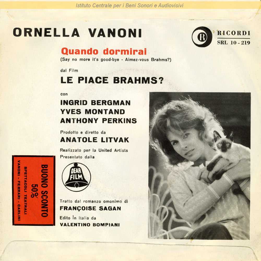 QUANDO DORMIRAI (THEME FROM GOODBYE AGAIN - Arturo Motta et ses chicaboums) Interpreti: Ornella Vanoni Autori: Georges Auric, Leo Chiosso, Dory Langdon