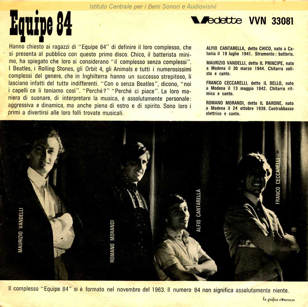 Note: Data matrici: 7 Ottobre / Gli autori originali di "Papa-Oom-Mow-Mow" sono erroneamentente indicati in etichetta come Tical e Pantros, entrambi pseudonimi di Armando Sciascia; Gippi è lo pseudonimo di Giuseppe Piccolo / Sul retro di copertina note di presentazione del gruppo / Formazione: Alfio Cantarella - batteria; Franco Ceccarelli - chitarra, voce; Romano Morandi - basso; Maurizio Vandelli - chitarra, voce
