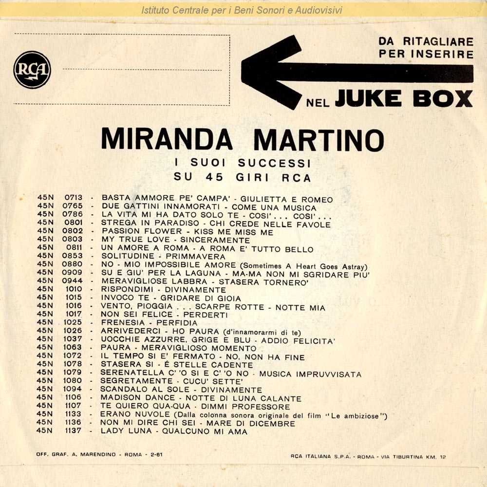 Autori: Jimmy Dale, Rodolfo Falvo, Enzo Fusco, Martin Kalmanoff, Jack Val, Sam Ward Produttori: Luigi Creatore Orchestra: Hugo Peretti
