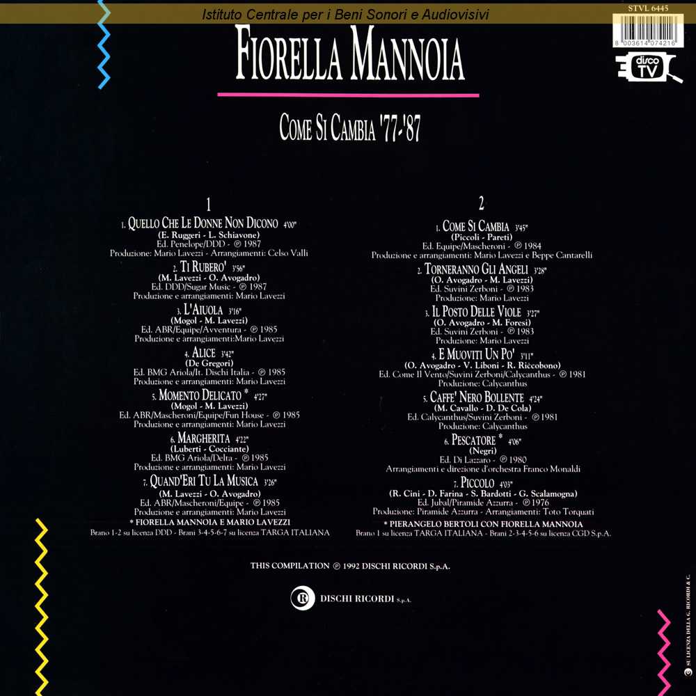 Interpreti: Mario Lavezzi, Fiorella Mannoia Autori: Mario Lavezzi, Mogol Arrangiatori: Mario Lavezzi Produttori: Mario Lavezzi Edizioni: ABR , Mascheroni , Equipe , Fun House