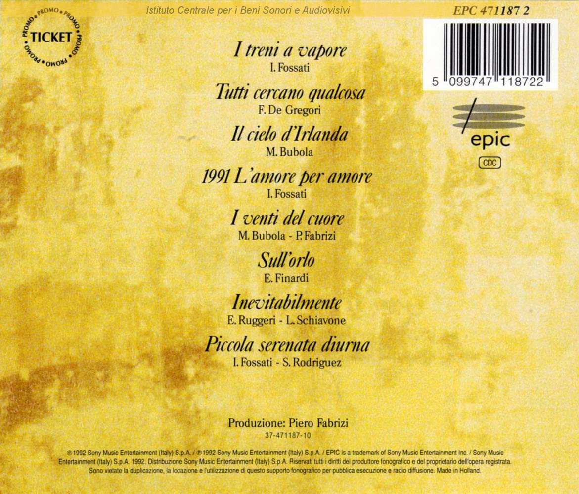 Autori: Ivano Fossati Musicisti: Renato Cantele (programmazione computer e tastiere) , Piero Fabrizi (chitarre acustiche) , Lele Melotti (batteria) , Pier Michelatti (basso) , Rilly (programmazione) , Fio Zanotti (tastiere) , Fio Zanotti (fisarmonica)