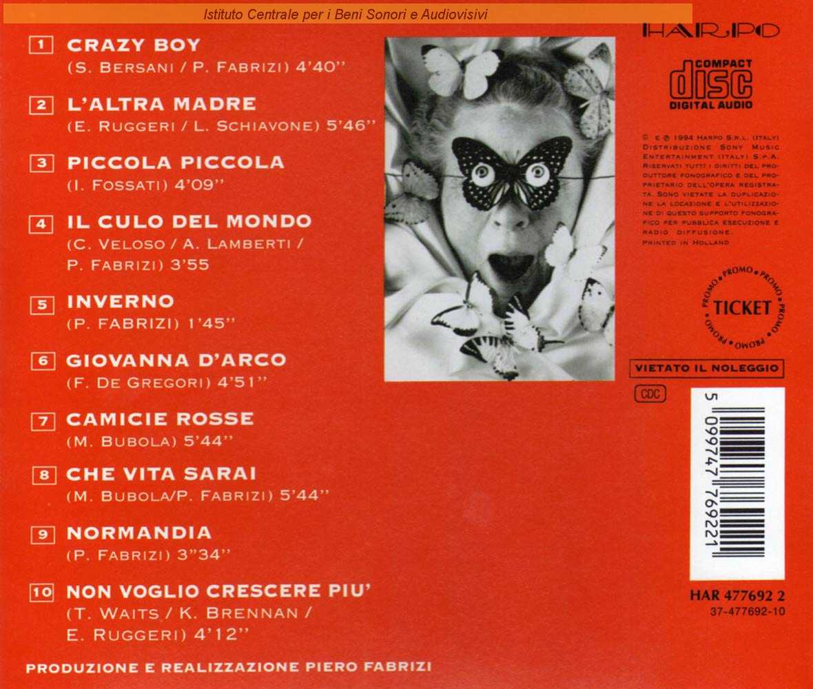 Autori: Ivano Fossati Arrangiatori: Celso Valli Musicisti: Luca Bignardi (programmazione) , Paolo Gianolio (chitarre) , Paolo Gianolio (basso) , Alfredo Golino (batteria) , Celso Valli (tastiere) Edizioni: Il Volatore