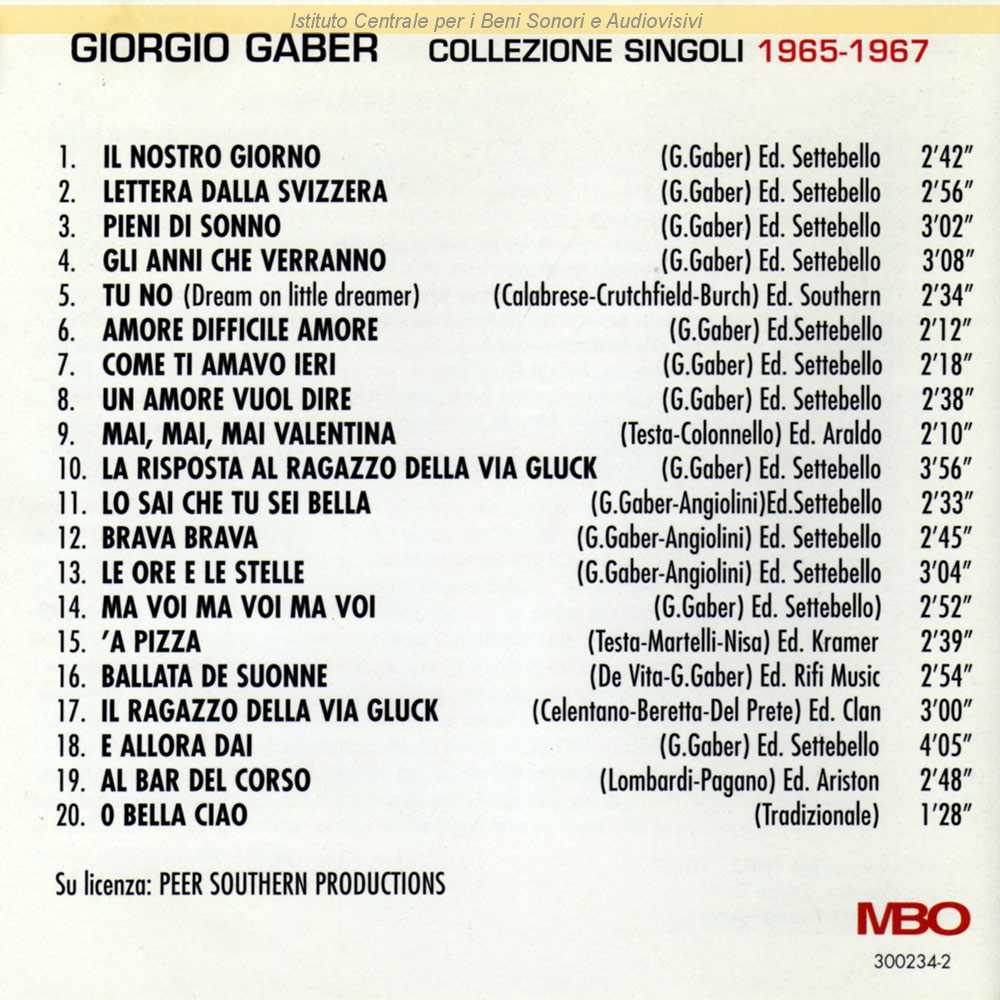 Autori: Giorgio Gaber Edizioni: Settebello