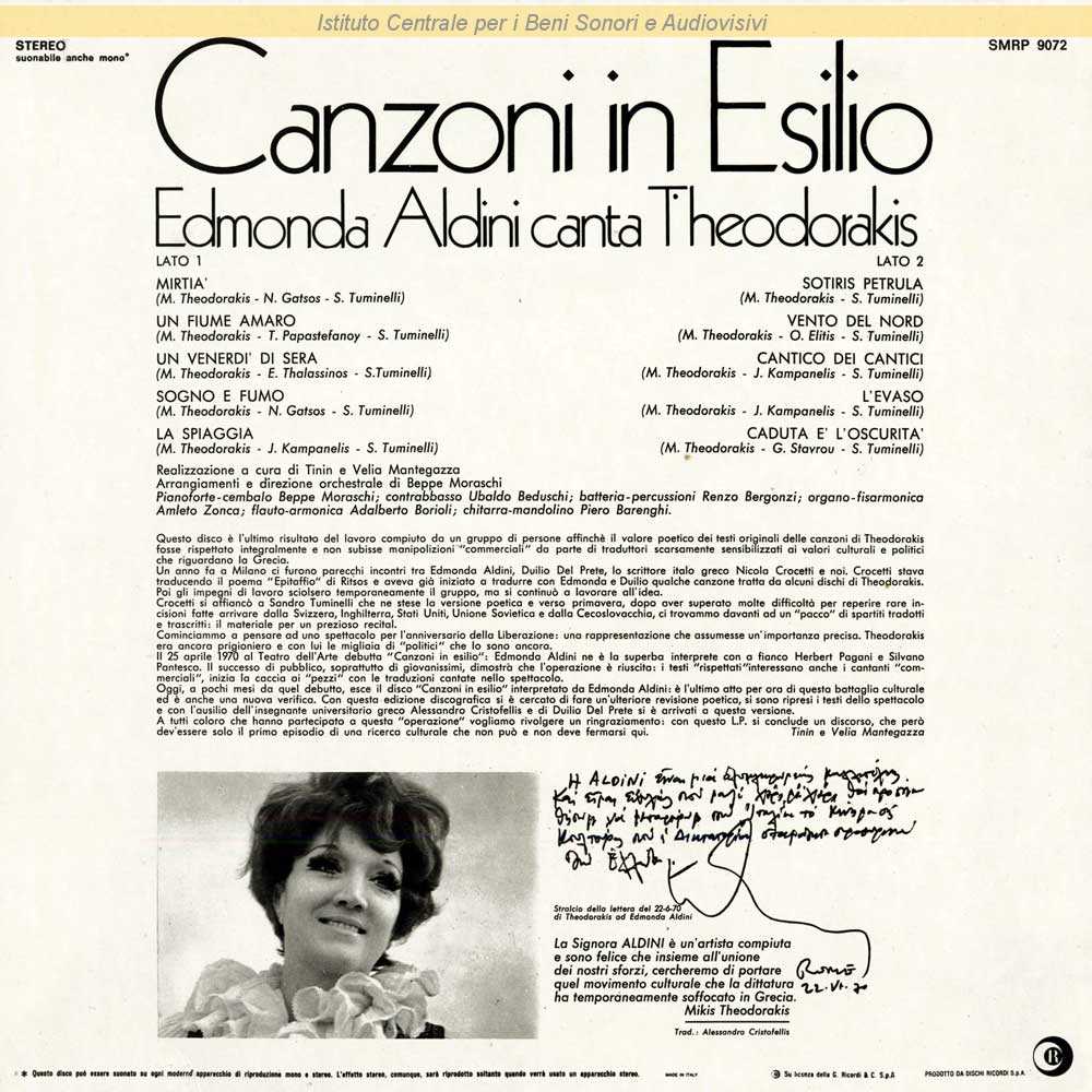 Autori: Nikos Gatsos, Mikis Theodorakis, Sandro Tuminelli