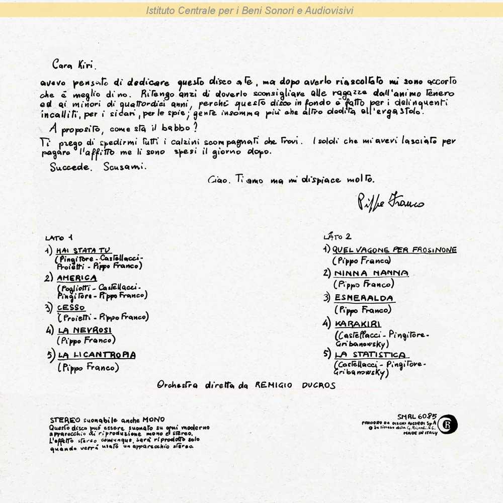 Autori: Pippo Franco Edizioni: Fono Film
