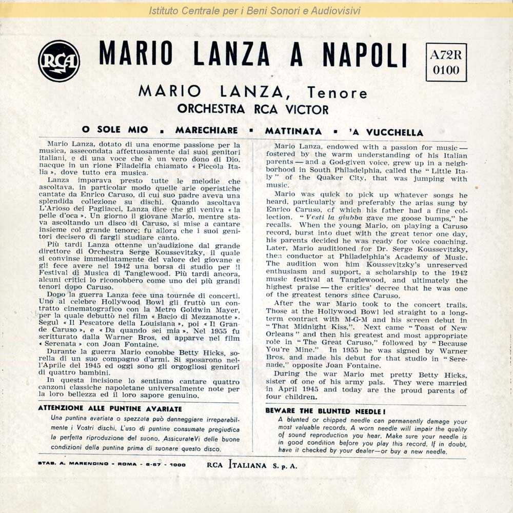 Autori: Giovanni Capurro, Eduardo Di Capua, Alfredo Mazzucchi Orchestra: Ray Sinatra