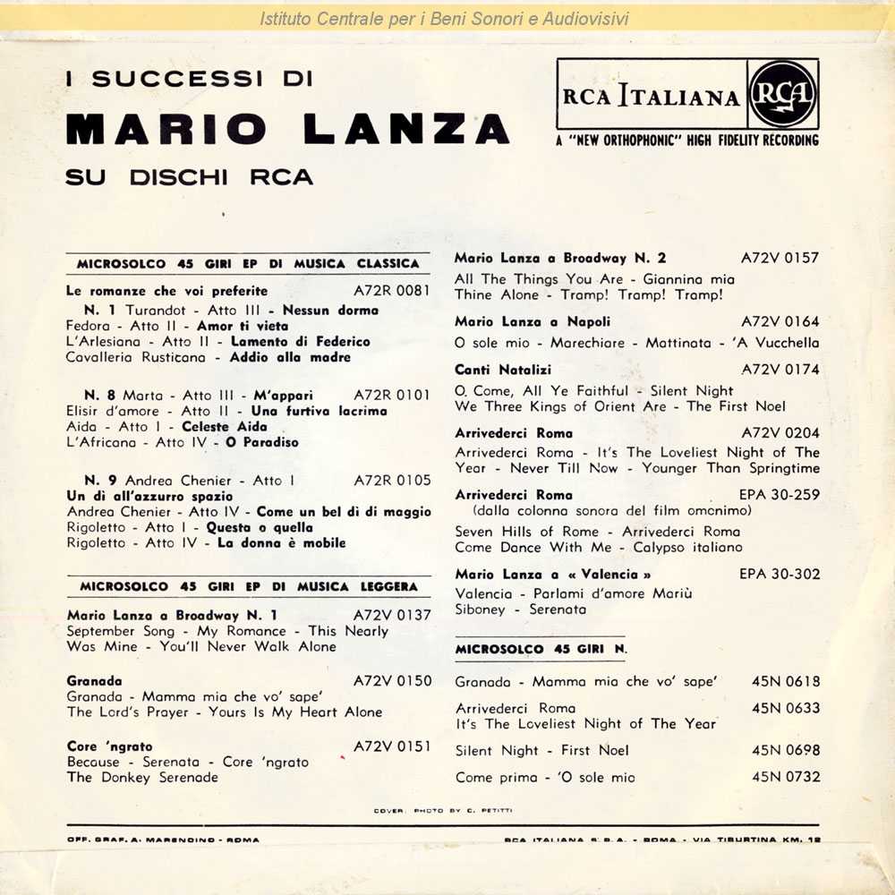 : Fotografia di C. Petitti / Distribuito da RCA Italiana - Roma