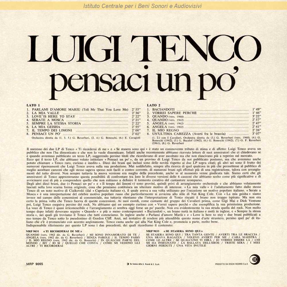 Autori: Luigi Tenco Orchestra: Gian Franco Reverberi