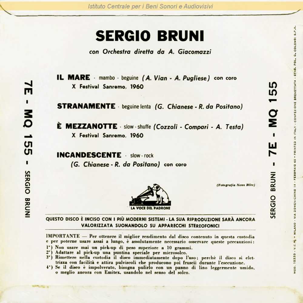 : "Il mare" e "È mezzanotte": "Festival di Sanremo 1960" / Sergio Bruni firma con il proprio nome anagrafico (Guglielmo Chianese)