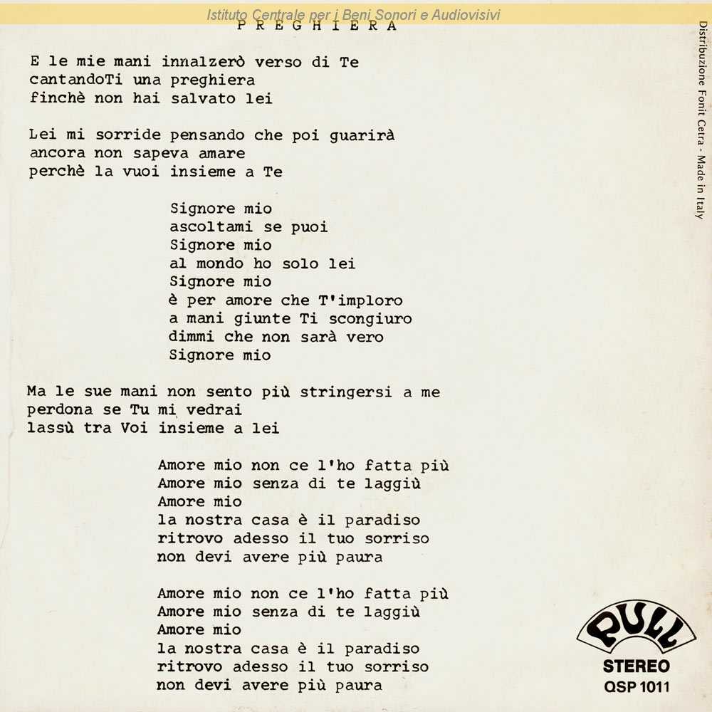 : Data matrici: 25 Novembre-13 Novembre / Sul retro di copertina testo del lato A / Distribuito da Fonit-Cetra - Milano