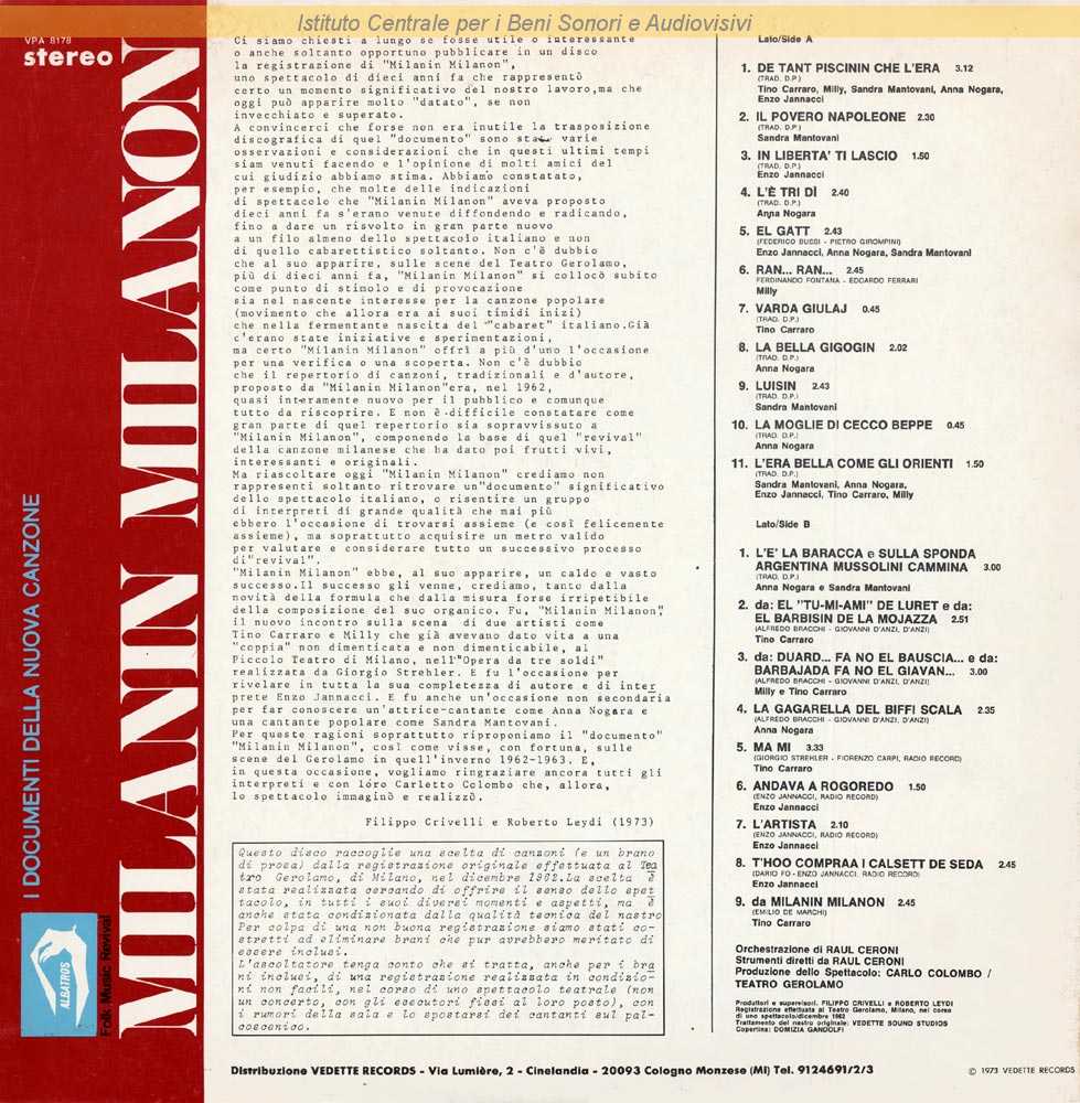Interpreti: Enzo Jannacci Autori: Dario Fo, Enzo Jannacci Edizioni: Radio Record