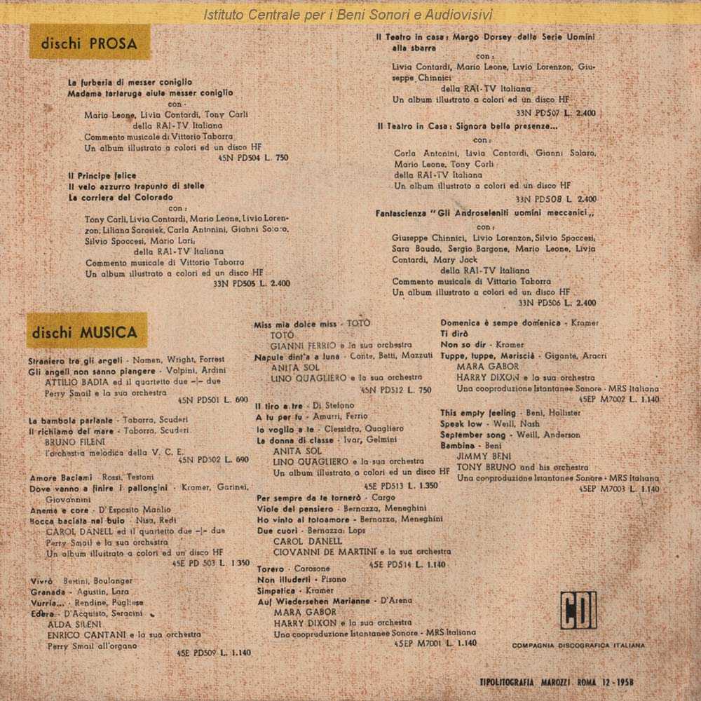 Autori: Nisa, Gino Redi Musicisti: 2+2 di Nora Orlandi (cori)