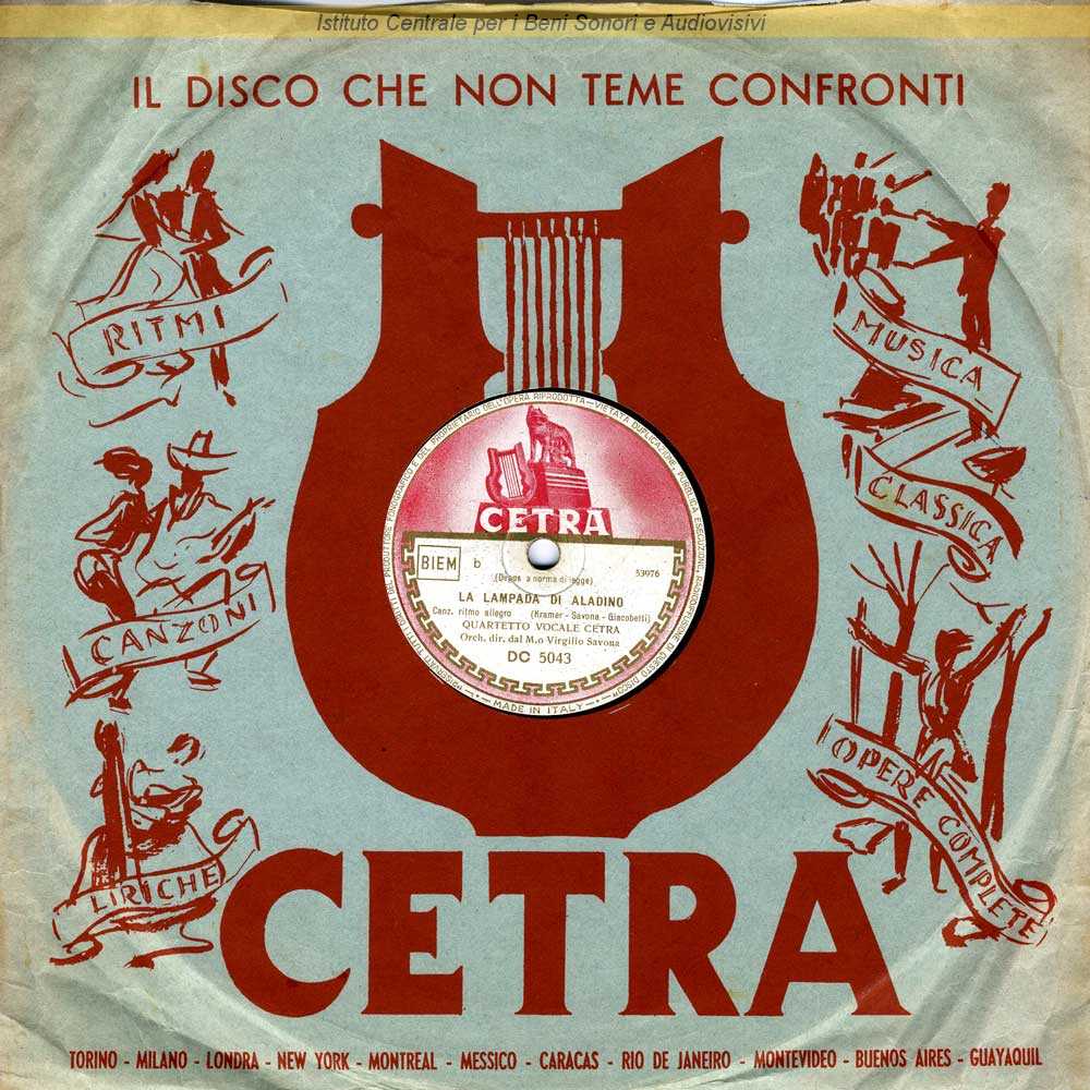 : Data matrici: 2 Novembre-3 Novembre / Inciso come Quartetto Vocale Cetra / Abbinato al disco DC 5042 in una confezione con copertina illustrata (Riba)