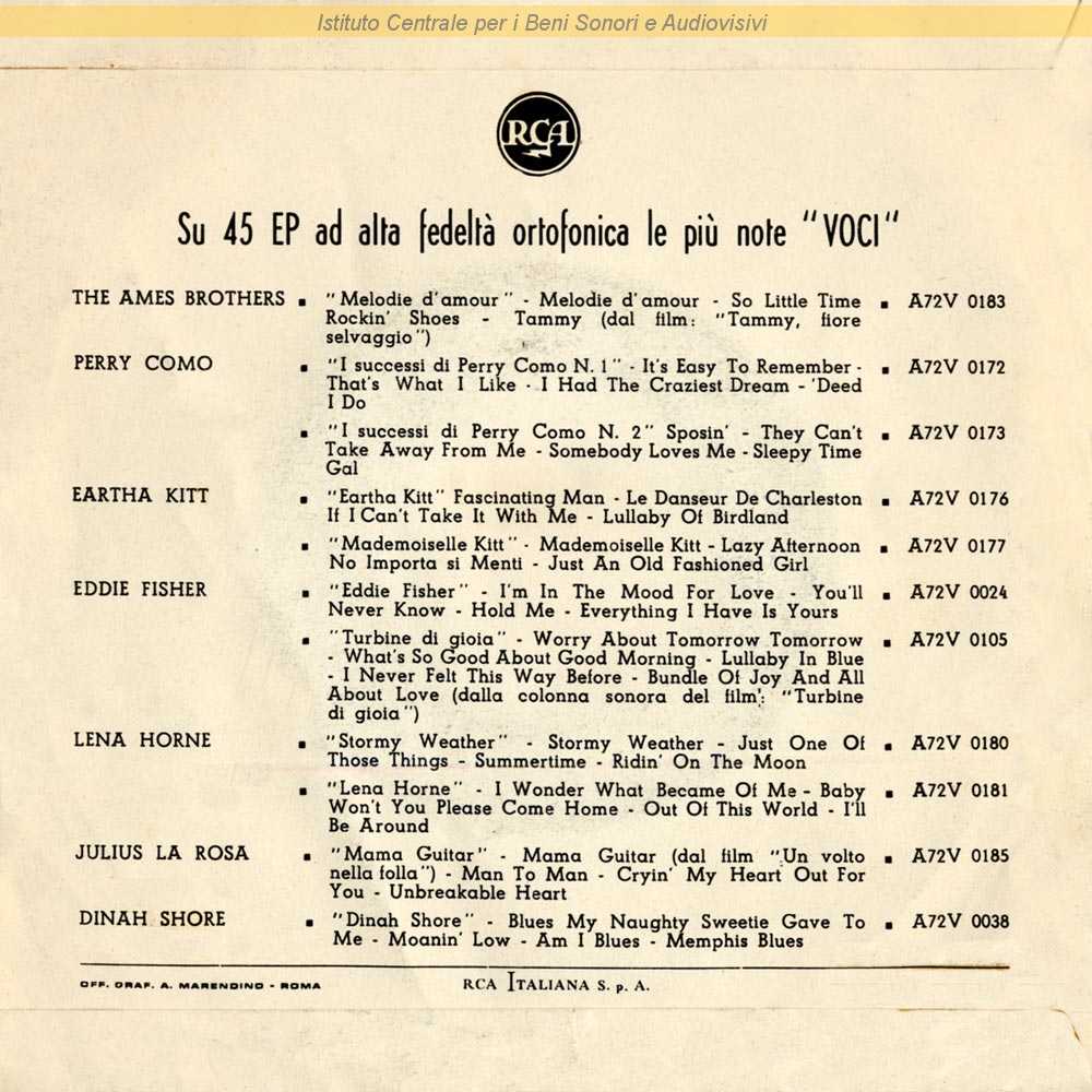 : Distribuito da RCA Italiana - Roma