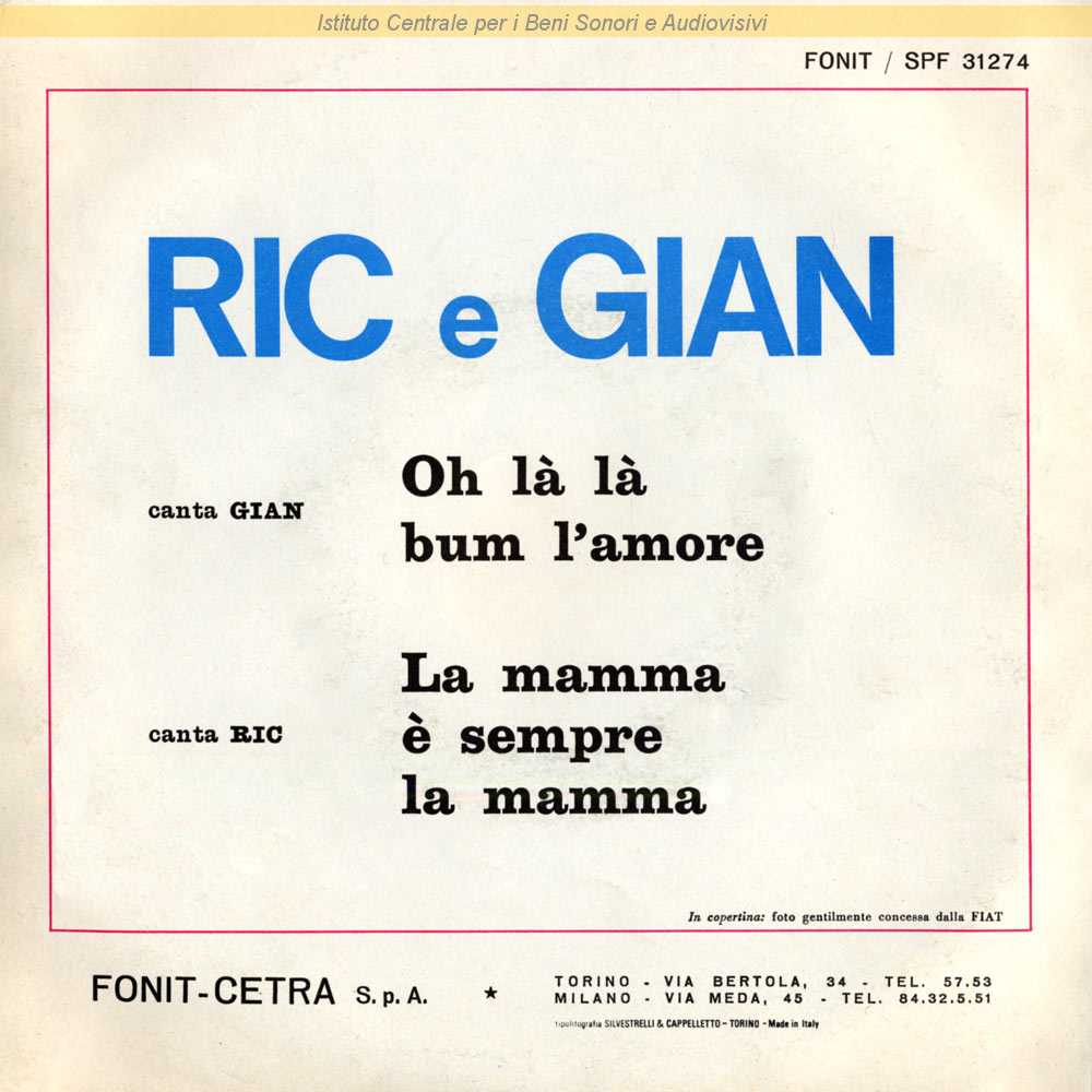 : Data matrici: 23 Novembre / Ric e Gian sono i nomi d'arte di Riccardo Miniggio e Gian Fabio Bosco / Distribuito da Fonit Cetra - Milano