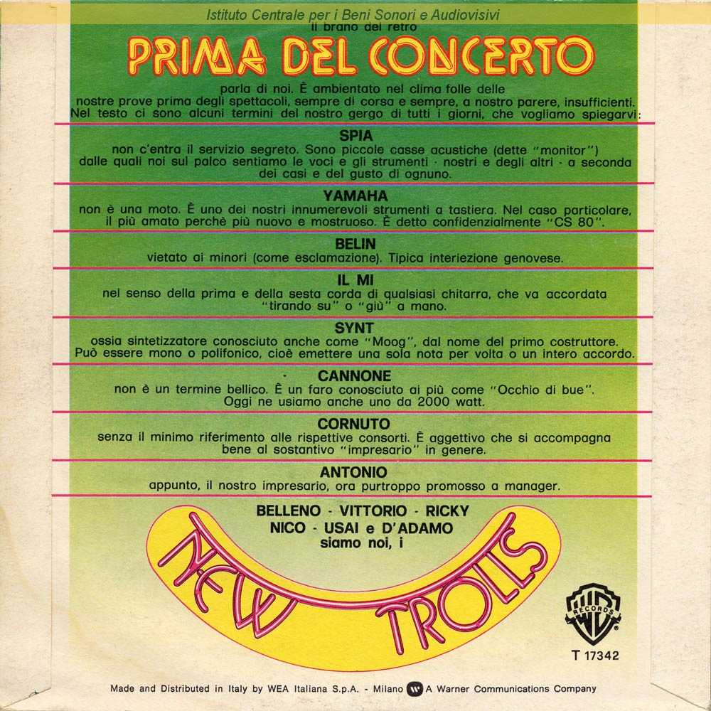: Lato A: sigla di apertura dello spettacolo televisivo "Luna Park" (Eros Macchi, 1979) / Distribuito da WEA Italiana - Milano / Formazione: Gianni Belleno - batteria, voce; Ricky Belloni - tastiere, voce; Giorgio D'Adamo - basso, voce; Vittorio De Scalzi - chitarre, voce; Nico Di Palo - chitarre, voce; Giorgio Usai - tastiere, voce