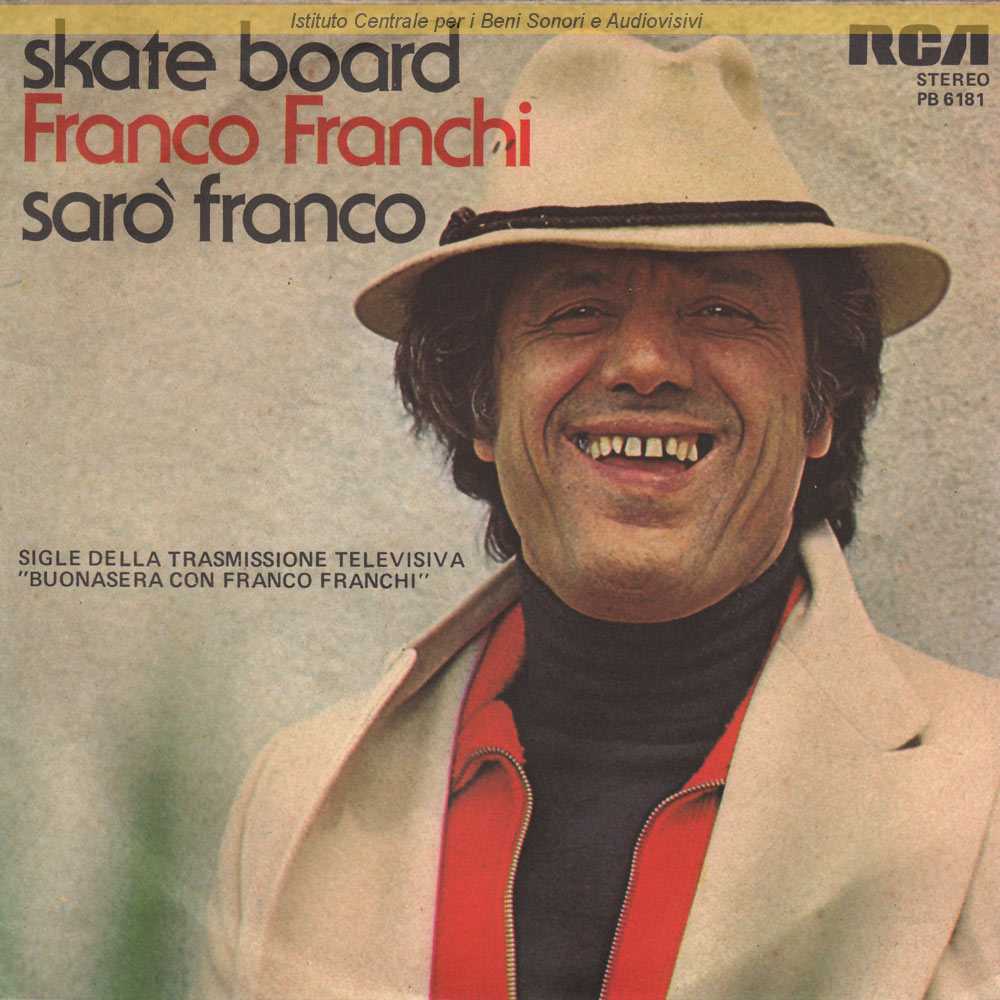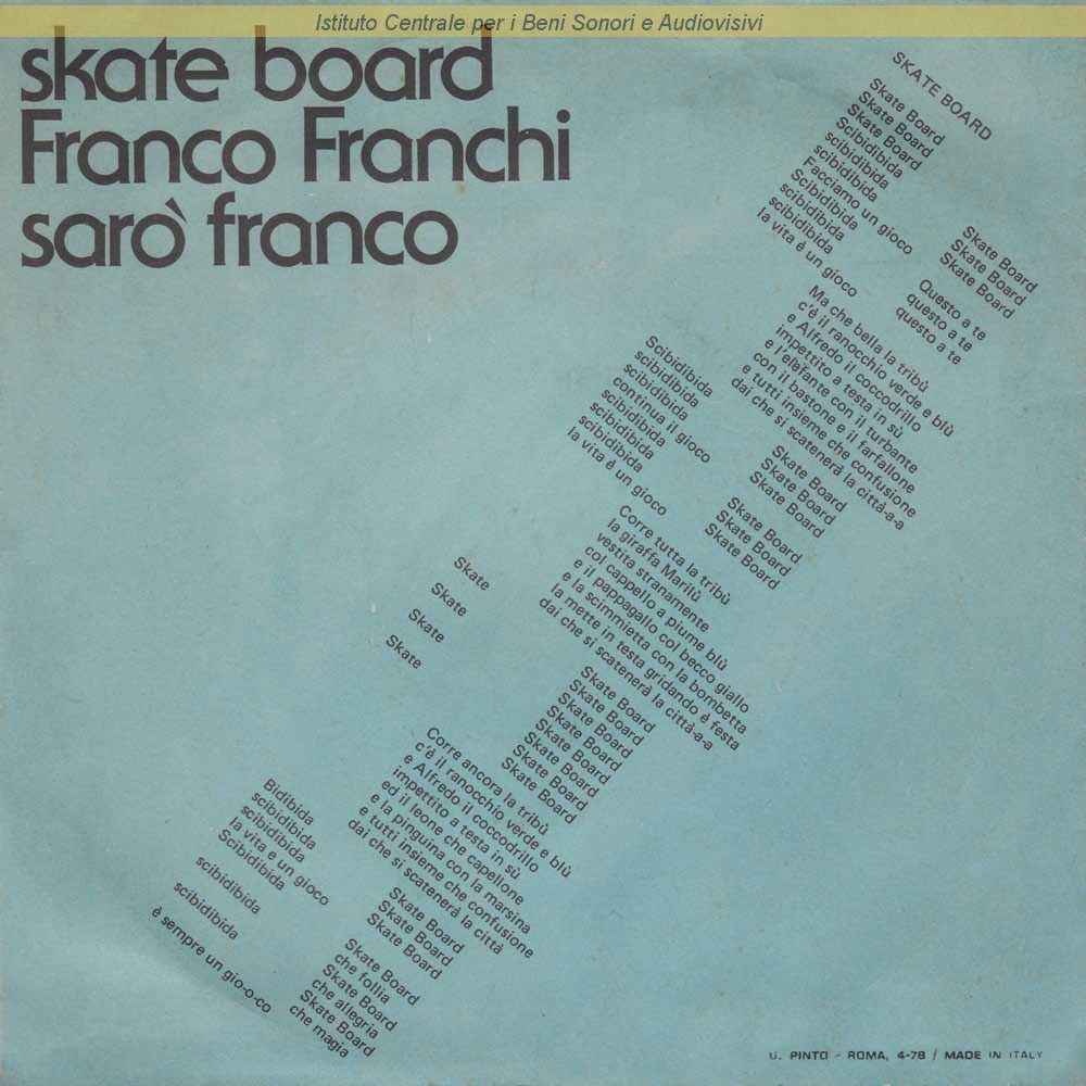 Note: Ambedue i brani dalla trasmissione tv "Buonasera con Franco Franchi" (Lucio Fulci, 1978) / Realizzato da Renato Coppola / Franco Franchi è il nome d'arte di Francesco Benenato - Pipolo è lo pseudonimo di Giuseppe Moccia / Sul retro di copertina il testo di "Skate Board" / Distribuito da RCA Italiana - Roma