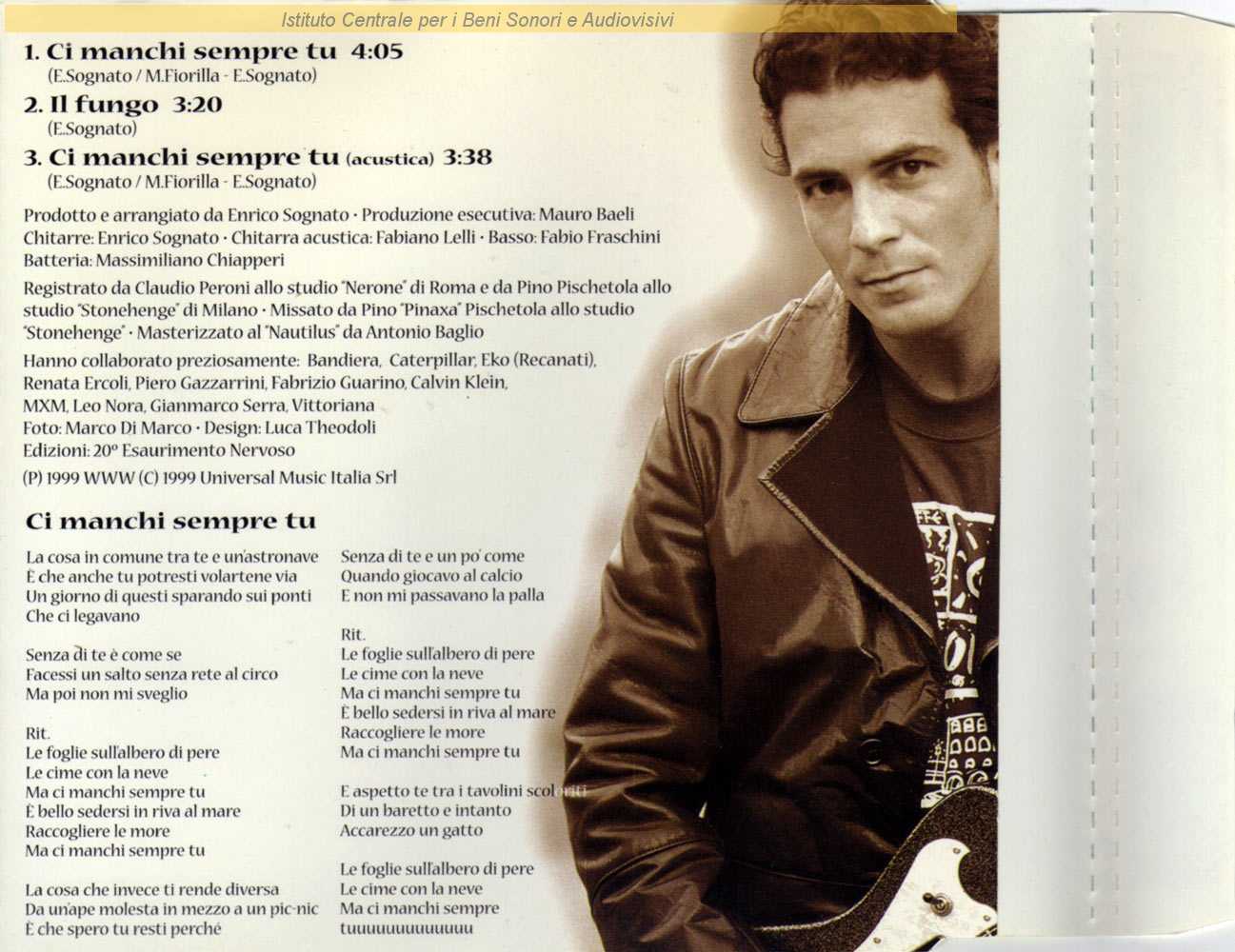 Note: Testo del primo brano sul retro di copertina / Fotografia di Marco Di Marco - Grafica di Luca Theodoli / Registrato presso gli Studi Nerone di Roma e Stonehenge di Milano, rispettivamente da Claudio Peroni e da Pino Pischetola - Mixato presso lo Studio Stonehenge da Pino Pischetola / Masterizzato presso lo Studio "Nautilus" di Milano da Antonio Baglio / Produzione esecutiva di Mauro Baeli / Distribuito da Universal Music Italia - Milano