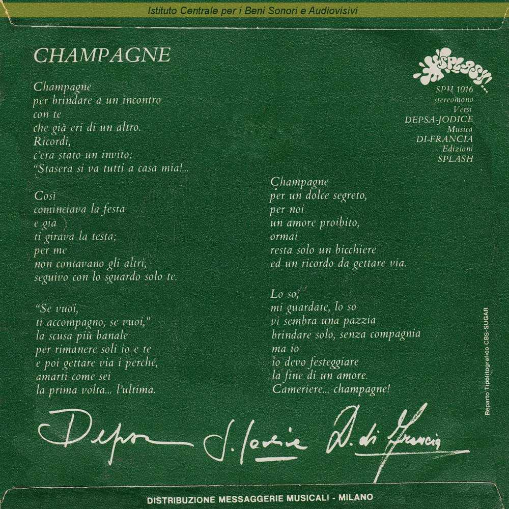 : Data matrici: 30 Novembre / Lato A: "Canzonissima 1973" / Depsa e Sharade sono gli pseudonimi rispettivamente di Salvatore De Pasquale e di Francesco Calabrese / Distribuito da Messaggerie Musicali - Milano