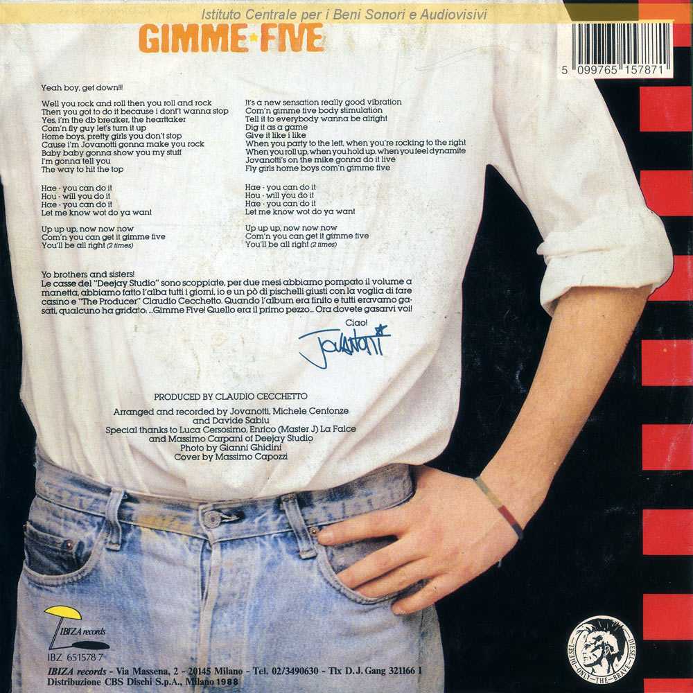 Note: Sul retro copertina il testo della canzone ed una breve presentazione del disco firmata da Jovanotti / Fotografie di Gianni Ghidini - Copertina di Massimo Capozzi / Registrato da Jovanotti, Michele Centonze e Davide Sabiu / Distribuito da CBS Dischi - Milano