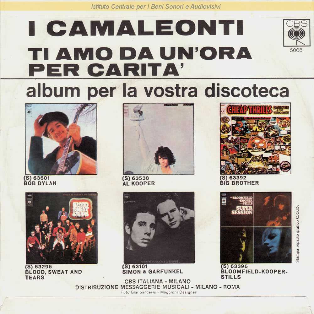 Note: Data matrici: 12 Maggio / Lato A: "Festivalbar 1970" / Fotografia di Paolo Gianbarberis - Grafica di Maggioni / Distribuito da Messaggerie Musicali - Milano / Formazione: Tonino Cripezzi - voce, tastiere; Paolo De Ceglie - batteria; Livio Macchia - voce, chitarra; Gerry Manzoli - basso