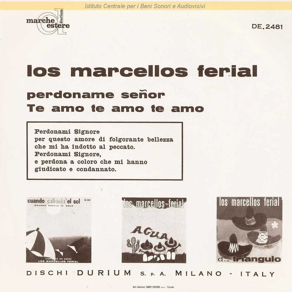 : Inciso come Los Marcellos Ferial / Sul retro di copertina breve estratto del testo di "Perdoname señor"