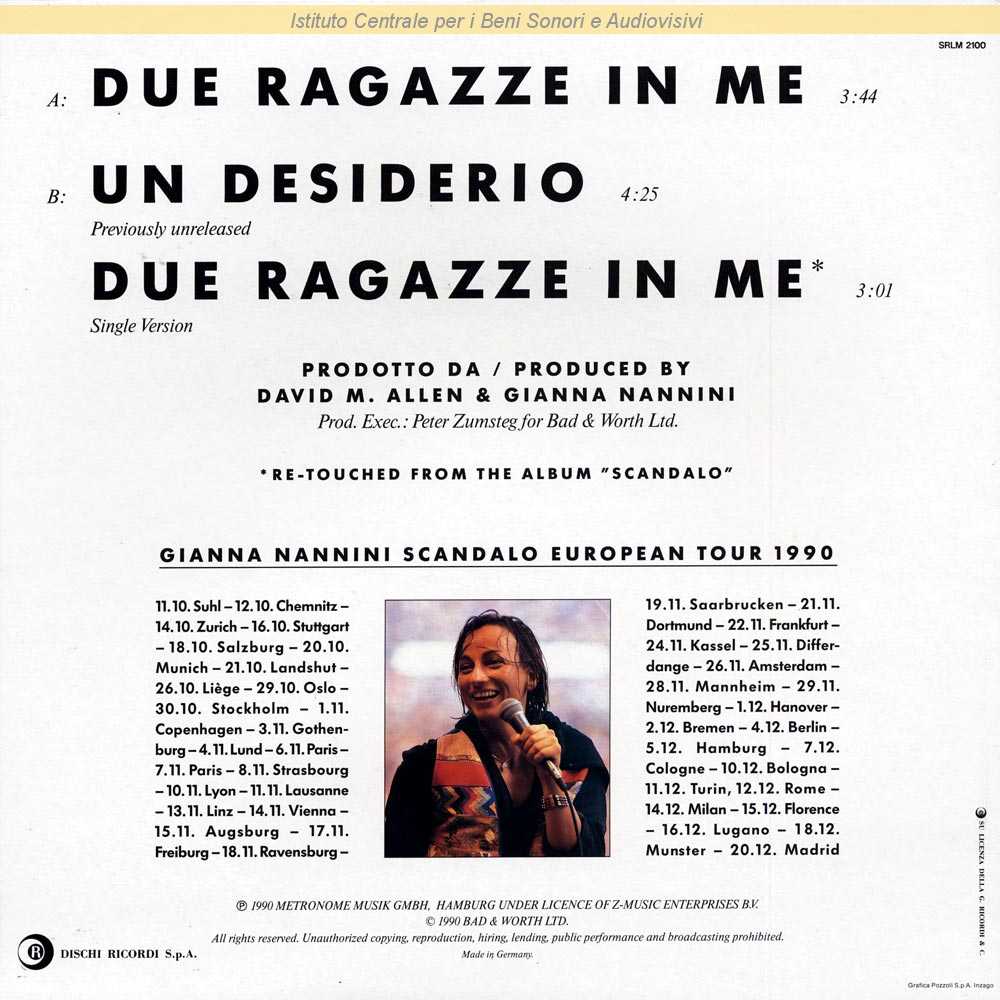 : Produzione esecutiva di Peter Zumsteg / Distribuito da Dischi Ricordi - Milano