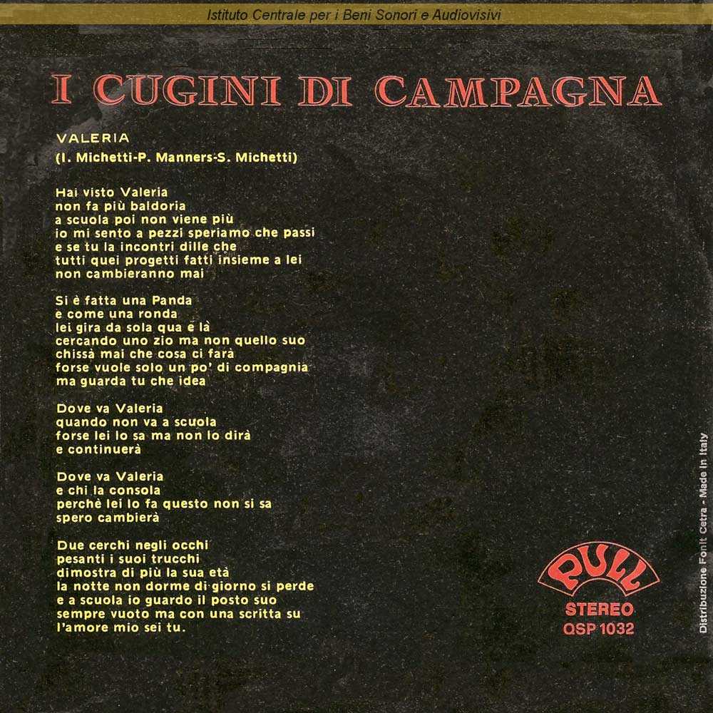 : Sul retro di copertina testo del lato A / Distribuito da Fonit Cetra - Milano