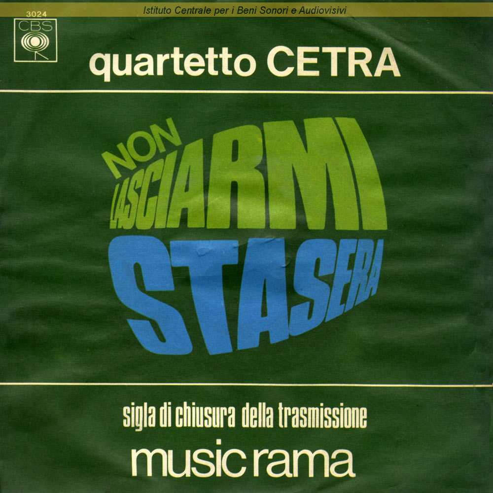 : Data matrici: 11 Ottobre-18 Agosto / Lato A: sigla di chiusura del programma tv "Music Rama" (Vito Molinari, 1967) / Distribuito da Messaggerie Musicali - Milano