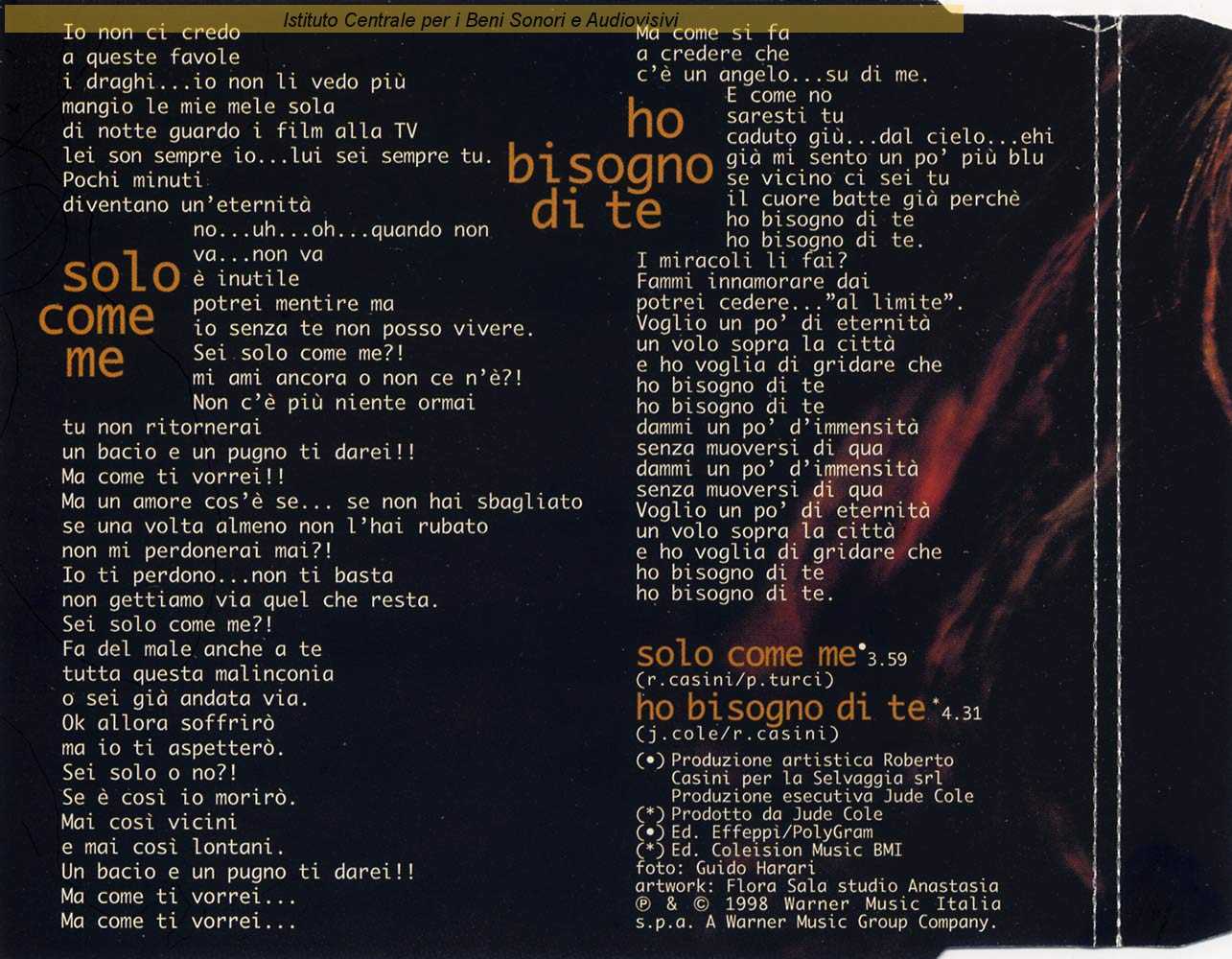 : Testi delle canzoni nel retro di copertina / Fotografia di Guido Harari - Grafica di Flora Sala