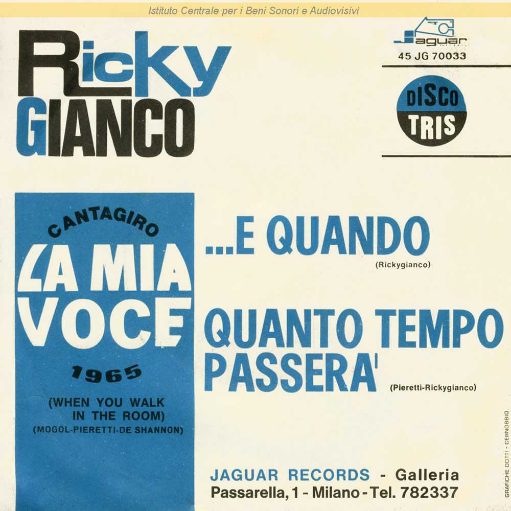 LA MIA VOCE (WHEN YOU WALK IN THE ROOM - Jackie De Shannon) Autori: Jackie De Shannon, Ricky Gianco, Mogol Musicisti: Satelliti di Ricky Gianco (tutti gli strumenti)