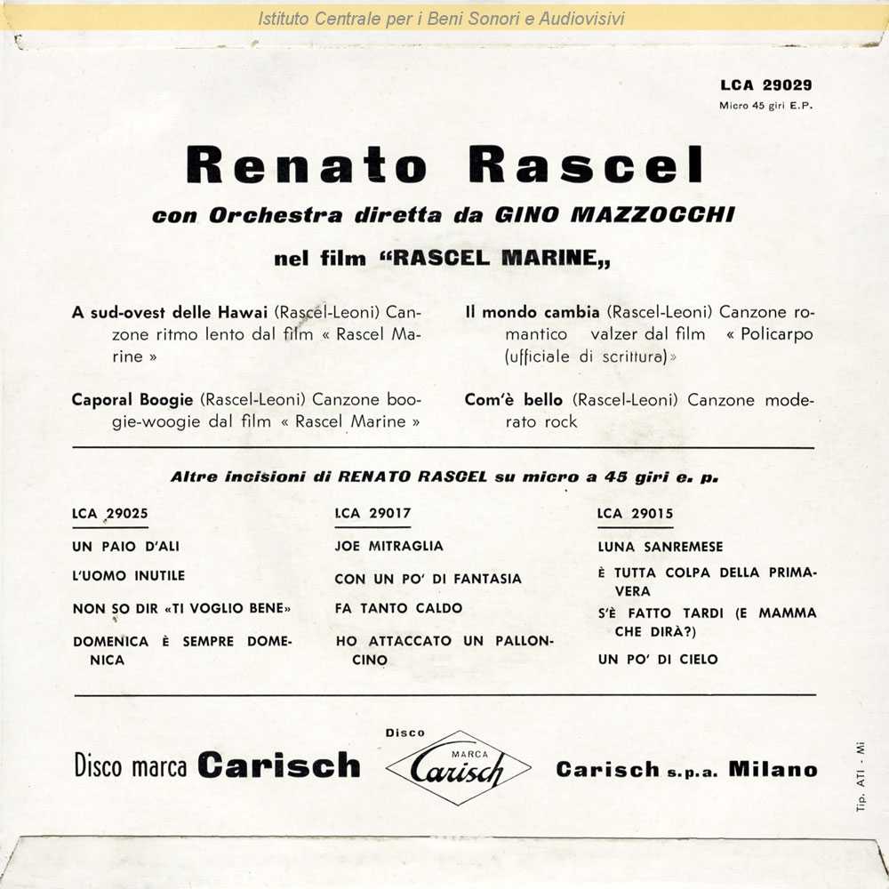: Data matrici: 28 gennaio / Lato A: dal film "Rascel Marine" (Guido Leoni, 1958) - "Il mondo cambia" dal film "Policarpo, ufficiale di scrittura" (Mario Soldati, 1958)